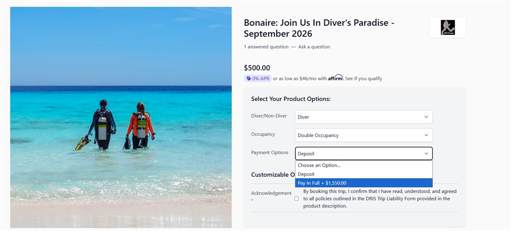 Thank you for your question and we're sorry about any confusion. The $1,550 in the dropdown is how much more you would pay over the $500 deposit if you paid in full at the time of booking the trip for the total price of $2,050. Please let us know if you need any other clarifications on the trip pricing. ~Dan